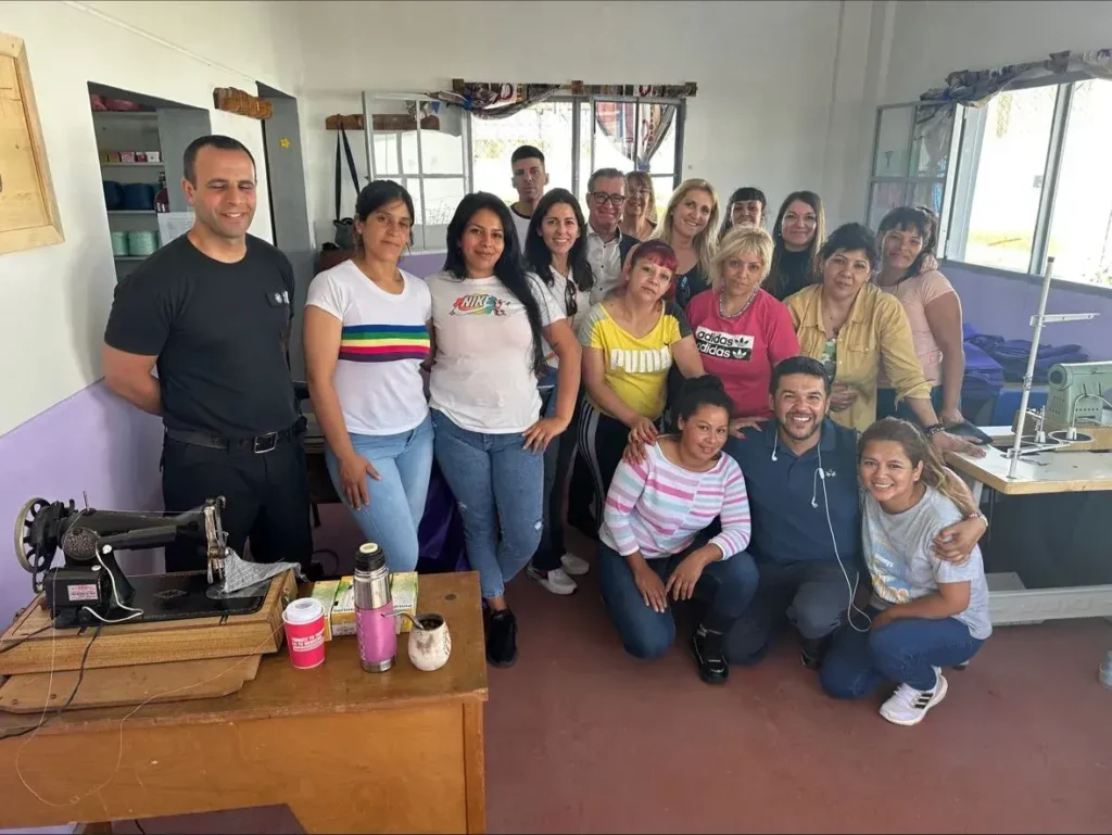 Melisa Turano del HSBC y Casiana Silveyra Perdriel de Beccar Varela, representando a BritCham Argentina, presenciaron de cerca los talleres de costura en las unidades 46 y 47. Allí, las internas adquieren habilidades valiosas, abriéndoles la puerta a la posibilidad de una futura independencia económica una vez recuperada su libertad.
