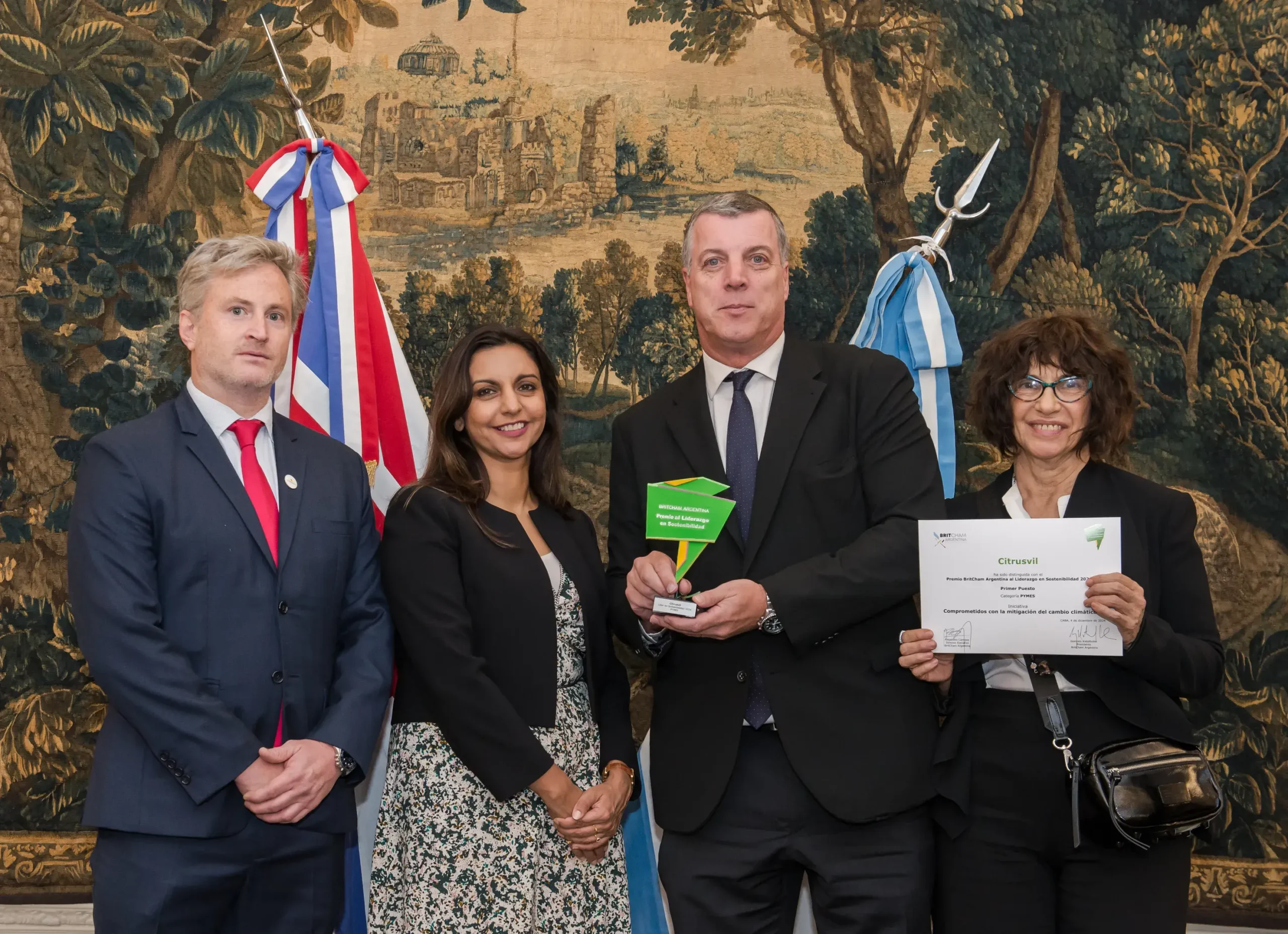 El pasado miércoles 4 de diciembre de 2024, BritCham Argentina llevó a cabo la XII edición de Premio al Liderazgo en Sostenibilidad 2024. El evento tuvo lugar en la Residencia Británica, un escenario ideal que permitió destacar a los líderes y proyectos más innovadores en materia de sostenibilidad.
